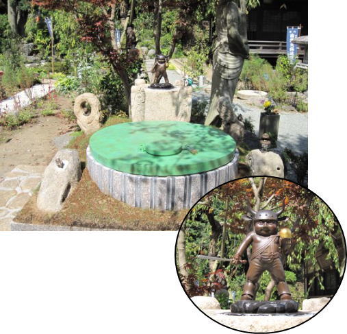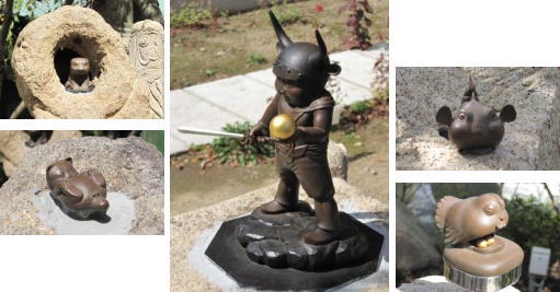 | この供養墓のご本尊は、伐折羅(ばさら)童子です。伐折羅童子は、薬師如来の眷属(けんぞく)である十二神将の内の伐折羅大将から、籔内佐斗司氏の考案により新たに生み出された童子像です。伐折羅童子は、右手に仏の智慧を表す利剣を、左手には願いを叶える宝珠を持っています。周りには、身近な動物の代表として、犬・猫・鳥・魚を遊ばせています。 |